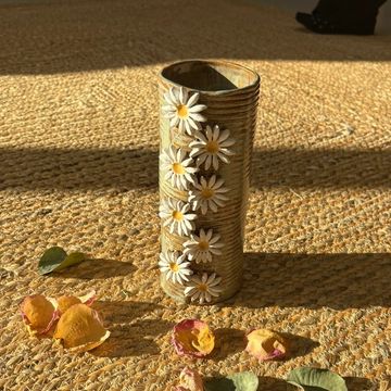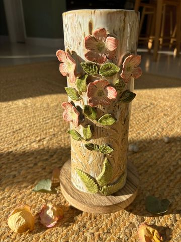 Sarah's vases are handbuilt using white stoneware clay. They are inspired by her garden and are delicately handpainted.